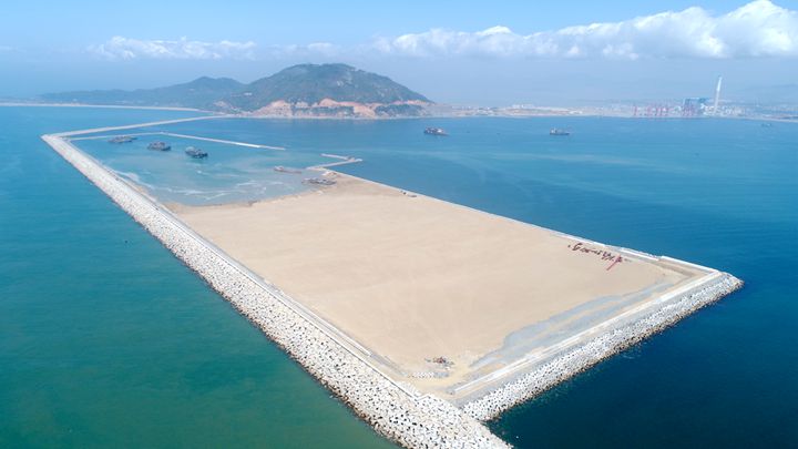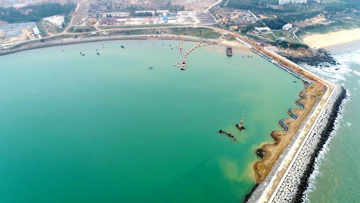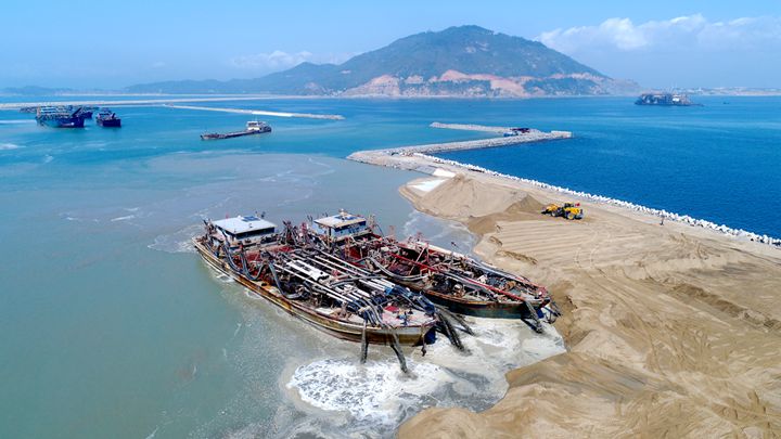 現(xiàn)場(chǎng)所見,大型抽沙作業(yè)船開足馬力,往來穿梭作業(yè)。據(jù)悉,粵西LNG造陸項(xiàng)目已形成陸域面積400畝,項(xiàng)目初現(xiàn)規(guī)模。