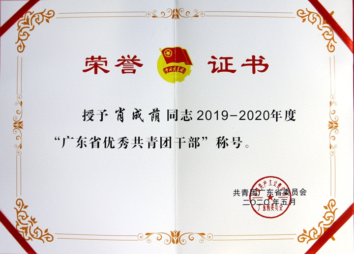 “廣東省優(yōu)秀共青團干部”榮譽稱號