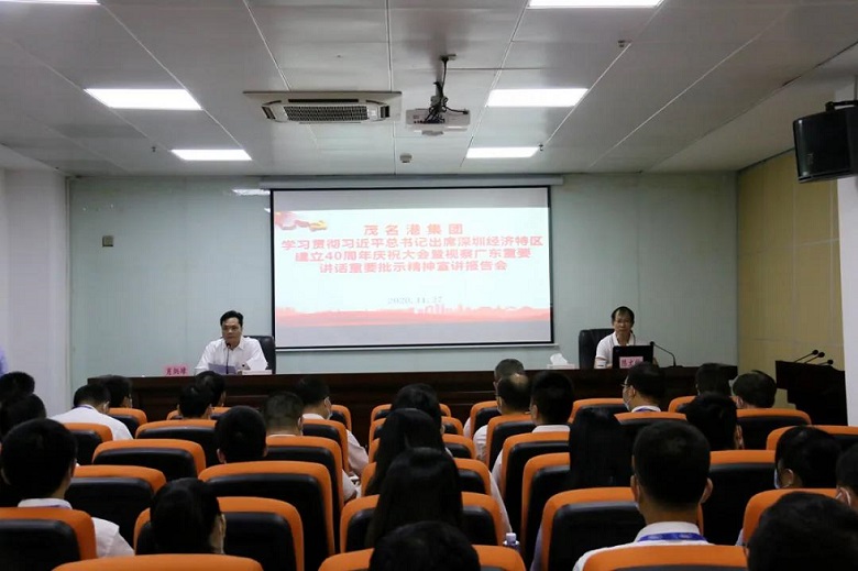 11月27日上午,茂名港集團(tuán)舉辦學(xué)習(xí)貫徹習(xí)近平總書記出席深圳經(jīng)濟(jì)特區(qū)建立40周年慶祝大會和視察廣東重要講話、重要指示精神宣講報告會。報告會邀請茂名市委宣講團(tuán)成員、市社科聯(lián)專職副主席陳文欽到會作了題為《以更大魄力在更高起點(diǎn)上推進(jìn)改革開放》的宣講報告。集團(tuán)黨委書記、董事長劉乃英、集團(tuán)黨委副書記肖炳璋和集團(tuán)機(jī)關(guān)各部室、各下屬企業(yè)黨員干部近90人參加了宣講會。