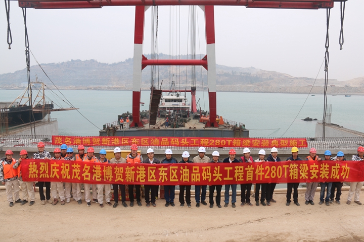 1月7日,茂名港博賀新港區(qū)東區(qū)油品碼頭工程首件箱梁順利完成安裝,標志著該項目進入全面架梁施工階段。