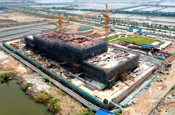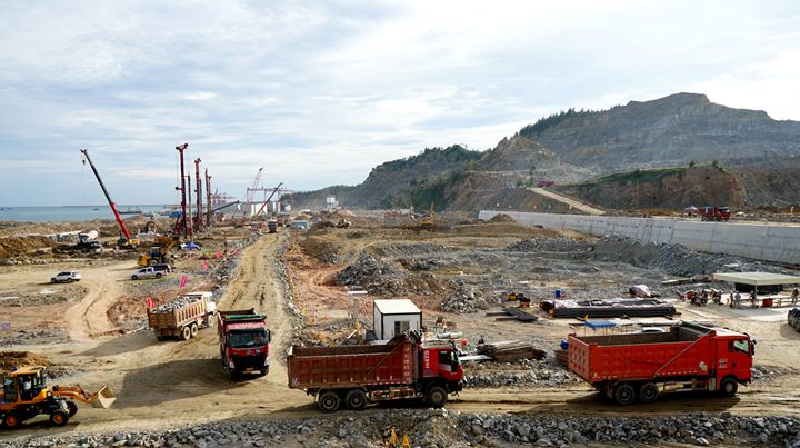 博賀新港區(qū)建設(shè)現(xiàn)場往來工程車輛川流不息,工地人員各司其職,各項工序有條不紊,處處展現(xiàn)出一派熱火朝天的建設(shè)景象。