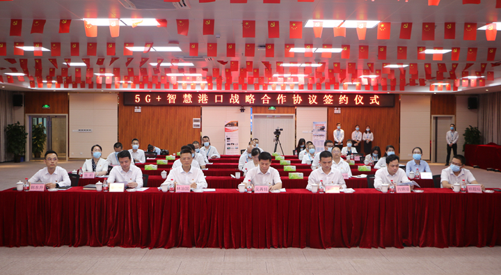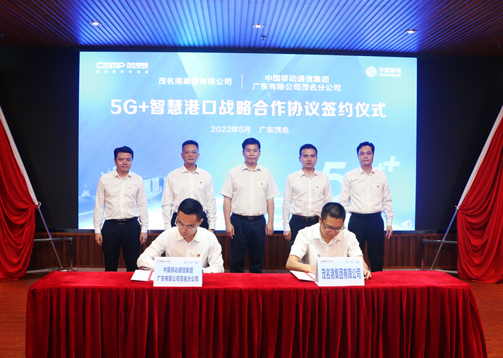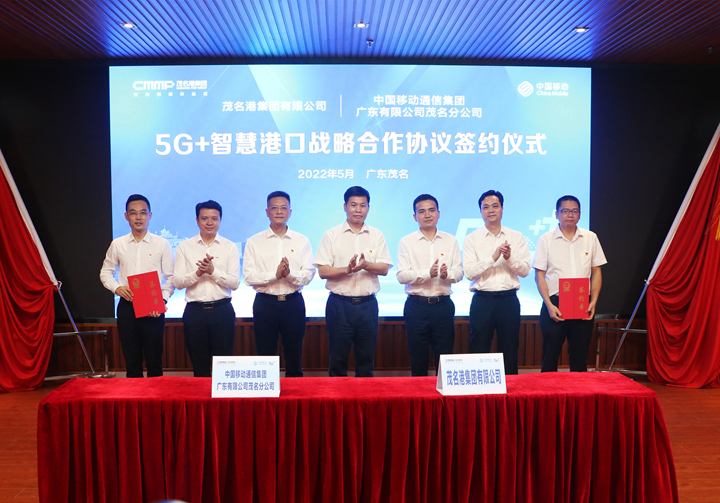 5月11日下午,茂名港集團(tuán)與茂名移動(dòng)簽署“5G+智慧港口”戰(zhàn)略合作協(xié)議,雙方攜手打造“5G+智慧港口”。茂名市政府副秘書長吳再銘,茂名港集團(tuán)黨委書記、董事長王志華,黨委副書記、總裁肖炳璋,茂名移動(dòng)黨委書記、總經(jīng)理林治國等一行出席簽約儀式。