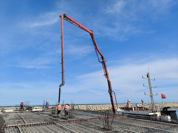 6月29日下午,茂名港博賀新港區(qū)東區(qū)油品碼頭工程水域公用管廊棧橋現(xiàn)澆面層完成澆筑,完成了油品碼頭項目公共管廊橋與碼頭全面貫通,實現(xiàn)了“海陸對接”,一舉貫通了博賀新港區(qū)的“大動脈”。