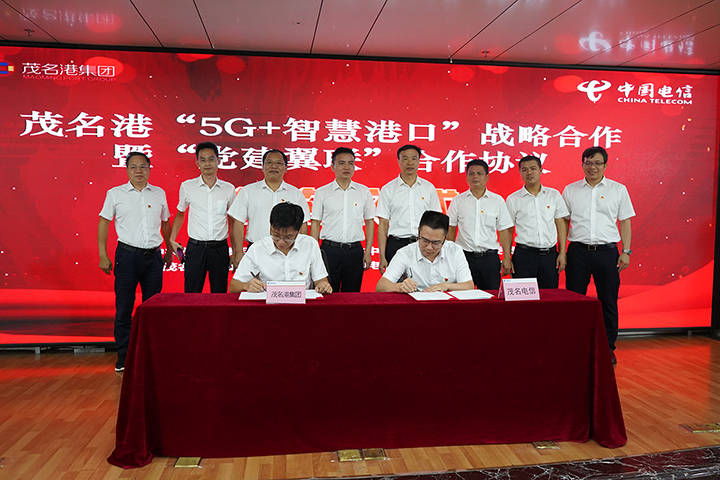 9月7日,茂名港集團(tuán)與茂名電信舉辦“5G+智慧港口”戰(zhàn)略合作簽約暨“黨建翼聯(lián)”黨組織結(jié)對(duì)共建合作簽約儀式,雙方將探索共建茂名港智慧港口5G標(biāo)桿項(xiàng)目,全面提升茂名港數(shù)字化運(yùn)營(yíng)能力。茂名港集團(tuán)黨委書(shū)記、董事長(zhǎng)王志華,中國(guó)電信茂名分公司黨委書(shū)記、總經(jīng)理李圣祥,副總經(jīng)理馮光星、胡榮臻等出席儀式,并見(jiàn)證《5G+智慧港口戰(zhàn)略合作協(xié)議》《黨建翼聯(lián)黨組織結(jié)對(duì)共建合作協(xié)議》的簽訂。