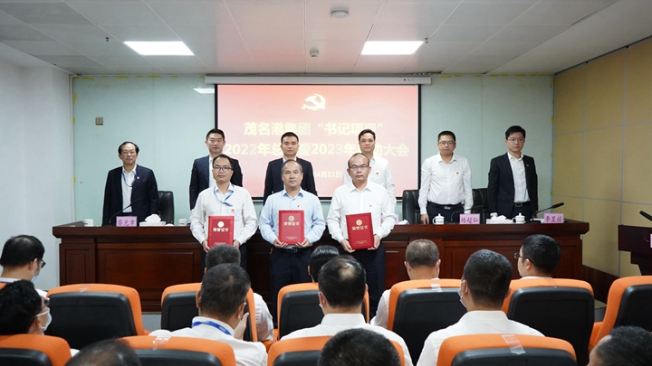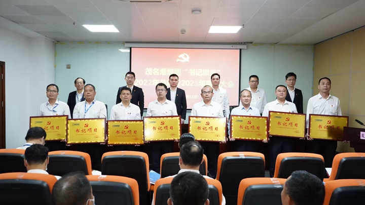 會(huì)上,通報(bào)了《茂名港集團(tuán)2022年“書記項(xiàng)目”總結(jié)評(píng)選結(jié)果》《茂名港集團(tuán)2023年創(chuàng)建“書記項(xiàng)目”實(shí)施方案》《中共茂名港集團(tuán)委員會(huì)關(guān)于茂名港集團(tuán)2023年度“書記項(xiàng)目”立項(xiàng)通知》。表彰了2022年3個(gè)“優(yōu)秀書記項(xiàng)目”,向2023年立項(xiàng)的8個(gè)“書記項(xiàng)目”進(jìn)行授牌,黨支部書記代表作了表態(tài)發(fā)言。