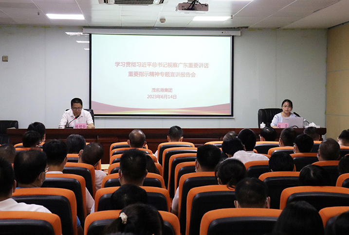 為深入學(xué)習(xí)貫徹習(xí)近平總書記視察廣東重要講話重要指示精神,引導(dǎo)廣大黨員干部職工學(xué)思踐悟、學(xué)以致用,凝聚思想共識。6月14日,茂名港集團(tuán)組織開展學(xué)習(xí)貫徹習(xí)近平總書記視察廣東重要講話重要指示精神專題宣講報告會,會議邀請茂名市委宣講團(tuán)成員、廣東石油化工學(xué)院馬克思主義學(xué)院講師趙芳作專題宣講。集團(tuán)黨委書記、董事長王志華,集團(tuán)黨委委員、副總裁楊超燦,集團(tuán)黨委委員、紀(jì)委書記、監(jiān)察專員陳軍,集團(tuán)副總裁李昱祺出席宣講會,集團(tuán)各黨支部黨員代表和機(jī)關(guān)全體職工約70人參加宣講會。