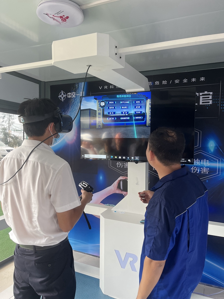 集團(tuán)組織長興石化公司、開發(fā)建設(shè)公司、濱?毓晒、濱海物業(yè)公司等職工體驗(yàn)安全館,通過佩戴VR、感受物體打擊、接觸電擊等“親密接觸”,讓大家身臨其境感受違規(guī)操作帶來的后果,通過理論和“實(shí)踐”不斷增強(qiáng)員工安全意識。