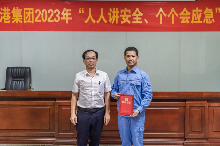 ▲長興石化公司蔡升高、李俊毅、何雄勝,濱?毓晒窘窈谩⒏劭诮(jīng)營公司張斯瑜榮獲三等獎 比賽期間還進(jìn)行安全生產(chǎn)知識有獎?chuàng)尨瓠h(huán)節(jié),觀眾積極踴躍舉手參與,現(xiàn)場氣氛激烈。 蔡光章對本次“人人講安全、個個會應(yīng)急”演講比賽給予充分肯定。他表示此次演講比賽選手立足本職崗位、結(jié)合工作實(shí)際,多角度多維度闡述對安全生產(chǎn)工作所感、所悟、所思,詮釋了安全生產(chǎn)的重要意義,營造了“人人講安全、個個會應(yīng)急”濃厚氛圍。他強(qiáng)調(diào),集團(tuán)上下要樹牢安全理念,重視應(yīng)急管理,掌握應(yīng)急救援的基本流程、方法和要求,學(xué)會自救互救等本領(lǐng),切實(shí)提高突發(fā)事件預(yù)防和應(yīng)急處置能力,為集團(tuán)高質(zhì)量發(fā)展筑牢安全屏障。 本次比賽吸引了集團(tuán)機(jī)關(guān)各部室及下屬企業(yè)代表共50多人到現(xiàn)場觀賽聆聽。