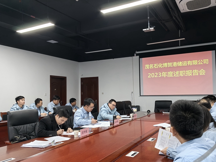 1月24日,茂名港集團與中國石化合資的茂名石化博賀港儲運公司召開2023年度述職報告會,全面總結2023年度工作,認真總結經驗、分析問題,以更好推進2024年各項工作開展。公司總經理梁中柳、副總經理梁上飛、財務總監(jiān)莊宇斌等領導,以及各部門負責人和職工代表參加了本次會議。