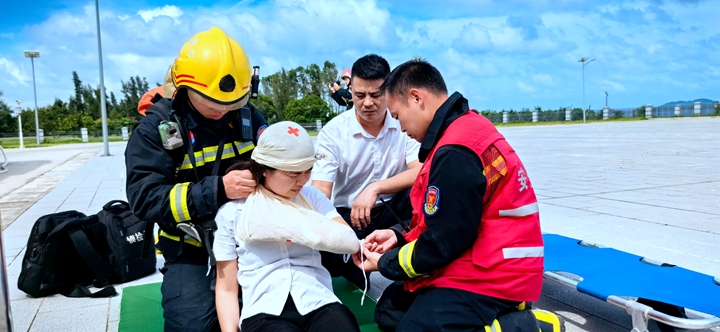 濱海物業(yè)公司聯(lián)合茂名石化北山嶺消防中隊開展撲滅火災及人員疏散演練,處置正確,迅速有效,演練后消防員進行心肺復蘇急救知識宣講實踐,有效提高員工應急技能