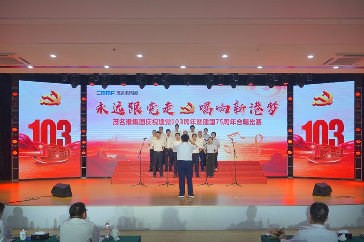 6月26日,茂名港集團(tuán)舉辦慶祝建黨103周年暨建國75周年“永遠(yuǎn)跟黨走,唱響新港夢(mèng)”主題紅歌大合唱比賽。來自集團(tuán)各黨支部的8支代表隊(duì)參加,以紅歌傳唱為契機(jī)、以紅色歌曲為傳播載體,重溫中國共產(chǎn)黨的崢嶸歲月和光輝業(yè)績(jī),并以最美好的祝福,向黨的103歲誕辰、新中國成立75周年獻(xiàn)禮!