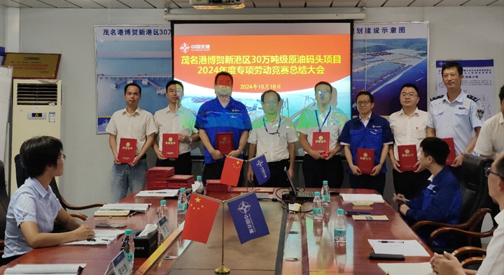 10月18日,茂名港博賀新港區(qū)30萬(wàn)噸級(jí)原油碼頭工程項(xiàng)目臨時(shí)黨支部在項(xiàng)目部會(huì)議室召開(kāi)2024年“奮戰(zhàn)120天”專(zhuān)項(xiàng)勞動(dòng)競(jìng)賽總結(jié)表彰大會(huì),對(duì)自開(kāi)展勞動(dòng)競(jìng)賽和成立黨員先鋒突擊隊(duì)以來(lái)為項(xiàng)目建設(shè)默默奉獻(xiàn)、表現(xiàn)優(yōu)異的優(yōu)秀黨員干部和先進(jìn)個(gè)人進(jìn)行表彰。集團(tuán)黨委委員、總工程師蔡光章出席會(huì)議并講話,集團(tuán)黨群工作部相關(guān)人員陪同出席會(huì)議。