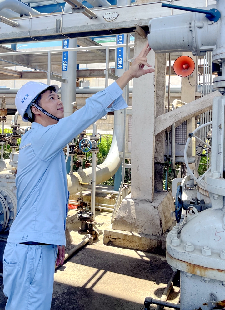 2024年是碼頭和庫區(qū)的重要歷史節(jié)點,何雄勝同志以“全天候”“無休息”的戰(zhàn)斗姿態(tài)沖鋒在前。油氣回收系統(tǒng)投用前,他連續(xù)堅守崗位,精準指導水沖洗、吹掃、氣密等關鍵工序,細致核查涉及液氮深冷工序等危險工藝的300余個法蘭點。“裝置運行不容疏忽,必須把安全放在首位!”這是他堅守的信念。正是這份黨員的極致嚴謹,確保了裝置一次性成功聯(lián)調,運行指標符合設計規(guī)范。他還指導用分析儀等設備精確測試不同工況能耗,為節(jié)能降耗打下了堅實基礎。面對首次卸船、裝船、茂石化長輸管線進罐等多項艱巨任務的圓滿完成,油污滿面也難掩他臉上的欣慰:“這就是黨員應有的‘進度條’!”
