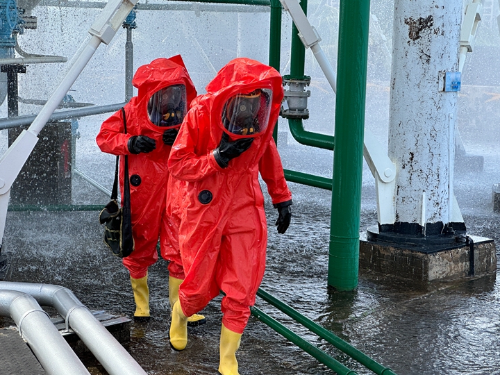 演練在中油王港公司的1號(hào)氣庫區(qū)域,由于設(shè)備老化,導(dǎo)致1#球罐液化石油氣進(jìn)罐閥門泄漏,泄漏的液化石油氣迅速揮發(fā),在1#球罐區(qū)域形成大量可燃?xì)怏w,一旦遇上火花就會(huì)發(fā)生火災(zāi)爆炸,情況萬分危急。14時(shí)38分,巡檢人員在現(xiàn)場(chǎng)發(fā)現(xiàn)泄漏,第一時(shí)間向值班經(jīng)理報(bào)告;值班經(jīng)理立即啟動(dòng)了班組應(yīng)急預(yù)案,并同步上報(bào)公司領(lǐng)導(dǎo)及安全環(huán)保部。應(yīng)急搶險(xiǎn)人員迅速穿戴好專業(yè)防護(hù)裝備,攜帶搶險(xiǎn)工具抵達(dá)泄漏現(xiàn)場(chǎng)。在做好自身安全防護(hù)的前提下,關(guān)閉泄漏上下游閥門,切斷氣源,阻止液化石油氣的進(jìn)一步泄漏;利用消防水槍、水炮對(duì)泄漏區(qū)域進(jìn)行噴水稀釋,降低可燃?xì)怏w的濃度,防止發(fā)生爆炸。在整個(gè)搶險(xiǎn)過程中,搶險(xiǎn)人員嚴(yán)格遵循操作規(guī)程,確保操作安全、高效,演練取得了圓滿成功。 演練結(jié)束后,中油王港公司立即組織召開了演練總結(jié)評(píng)估會(huì)。公司領(lǐng)導(dǎo)對(duì)此次演練給予了充分肯定,認(rèn)為演練組織嚴(yán)密、指揮得當(dāng)、響應(yīng)迅速、處置有效,達(dá)到了預(yù)期的演練目的,同時(shí),也指出了演練過程中存在的一些不足之處,如個(gè)別應(yīng)急救援人員對(duì)應(yīng)急設(shè)備的操作不夠熟練、信息溝通還不夠順暢等,要求公司安全、生產(chǎn)部門針對(duì)這些問題制定整改措施,進(jìn)一步完善應(yīng)急處置方案,加強(qiáng)應(yīng)急培訓(xùn)和演練,不斷提升公司的應(yīng)急處置能力。(通訊員:黎 強(qiáng)) |